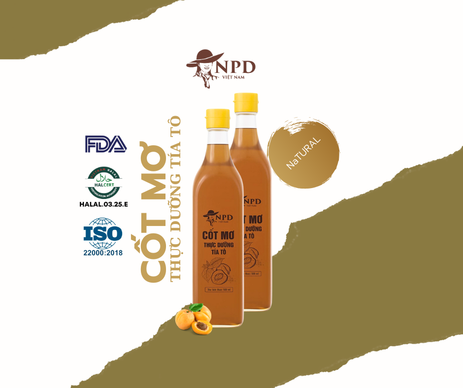 Thành phần: Nước cốt chiết từ quả mơ (75%), muối hồng và lá tía tô (8%).